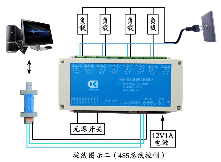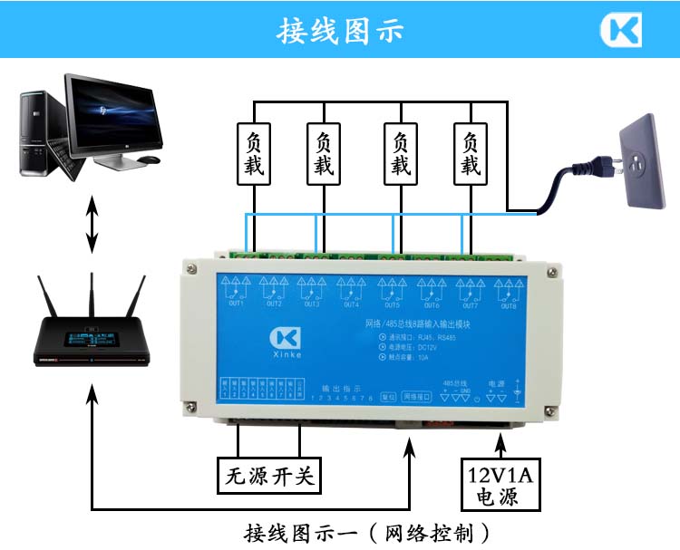 網(wǎng)絡(luò)串口RS485總線1/4/6/8/16路無源開關(guān)量輸入10A繼電器輸出模塊