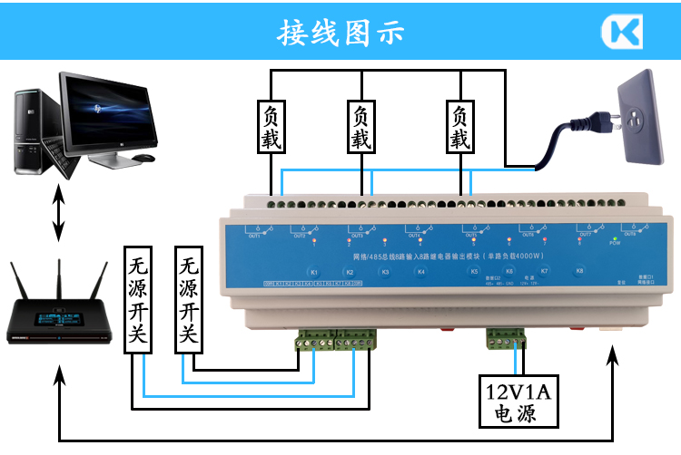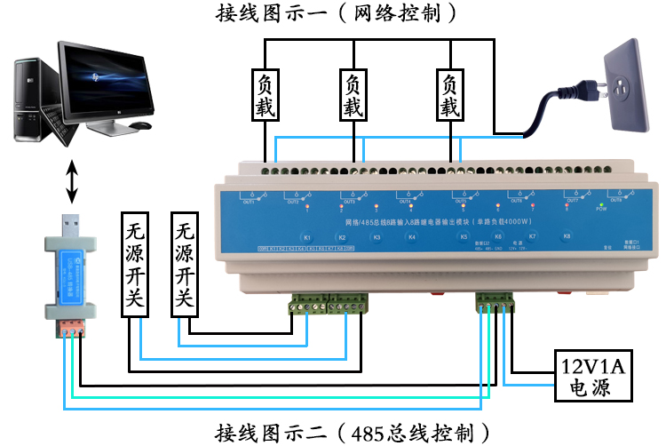 RJ45網(wǎng)絡/RS232/RS485總線4/6/8路輸入輸出30A繼電器智能照明模塊